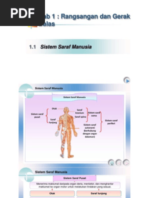 Seluruh saraf yang ada dalam tubuh kita berpotensi terhadap kerusakan. Pada tingkatan sel, sistem saraf didefinisikan dengan keberadaan sel khusus dalam hal ini neuron. Bab 2, 3, 4, 5, 6, 7, 8, 9. Sistem saraf pada manusia|sistem saraf manusia dibedakan menjadi sistem saraf sadar dan sistem saraf tak sadar. Semua bentuk rangsangan tersebut, kemudian akan.